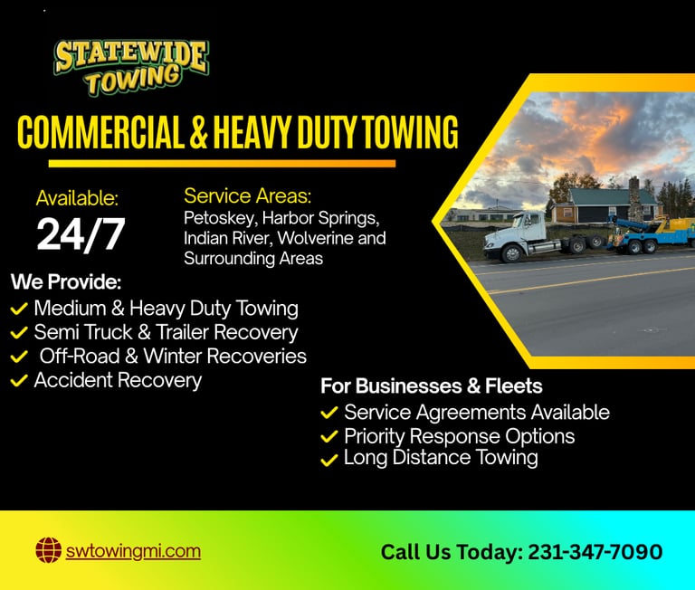 Serving Northern Michigan with modern, user-friendly towing solutions for all vehicles.