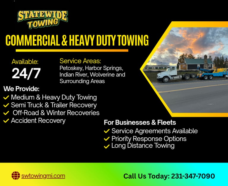 Reliable towing and recovery services for all vehicles in Northern Michigan and Petoskey.